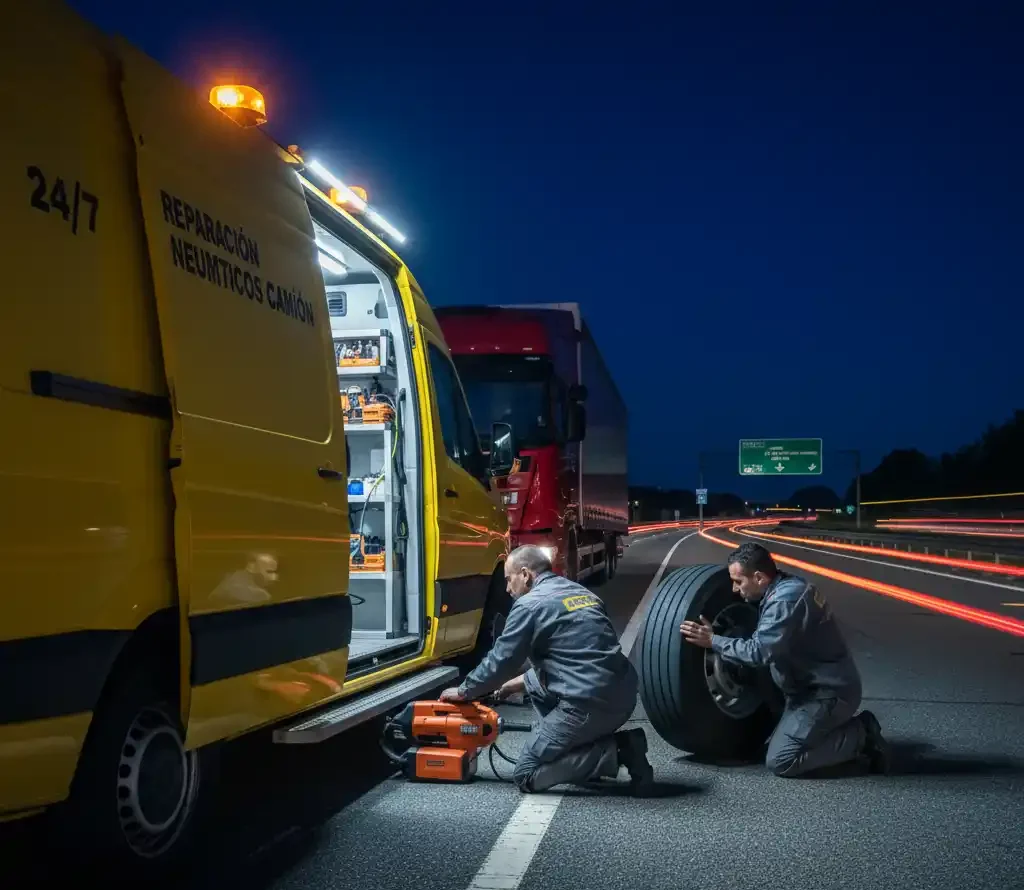 Servicios de reparación de neumáticos para camiones las 24 horas